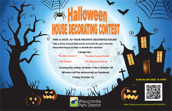 Wauconda Park District's 3rd annual Halloween House Decorating contest to help spread some holiday festivities. Participating Wauconda homes will be on our Halloween House Decorating Map so that families in our community can drive around town and take in the sights of the season. Houses entered in the contest will be voted on by the community as well!